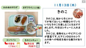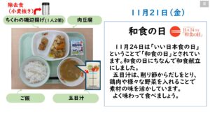 2025年11月の給食カレンダー