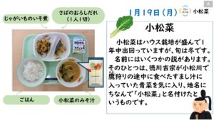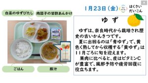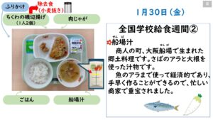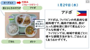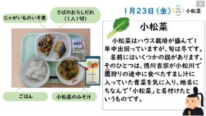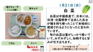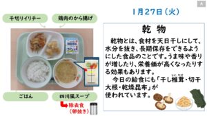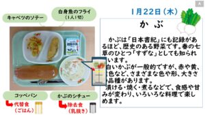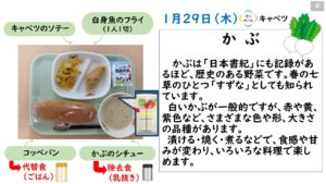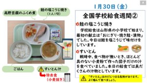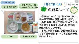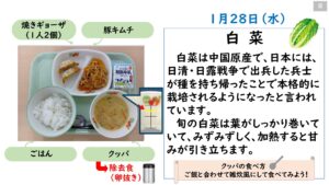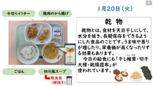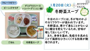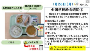 2026年1月の給食カレンダー