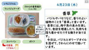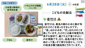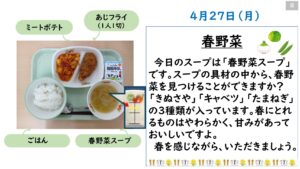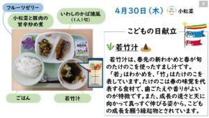 2026年4月の給食カレンダー